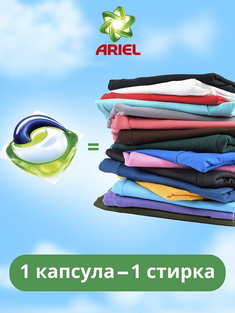 Капсулы для стирки Ariel 54 шт, для цветного, очищение и ароматизация, удаление пятен и загрязнений