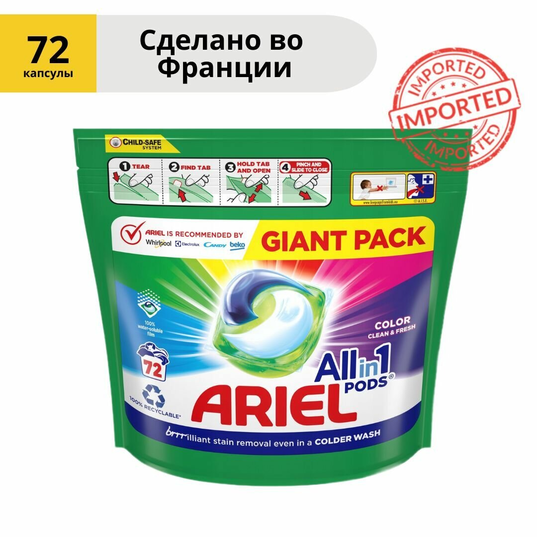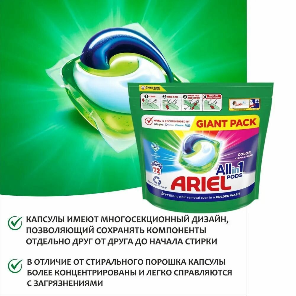 Капсулы для стирки Ariel Pods All in One Color, 72 шт