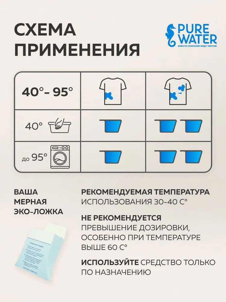 Стиральный порошок для белого и цветного Pure Water, концентрированный, 0,3 кг. интересное: