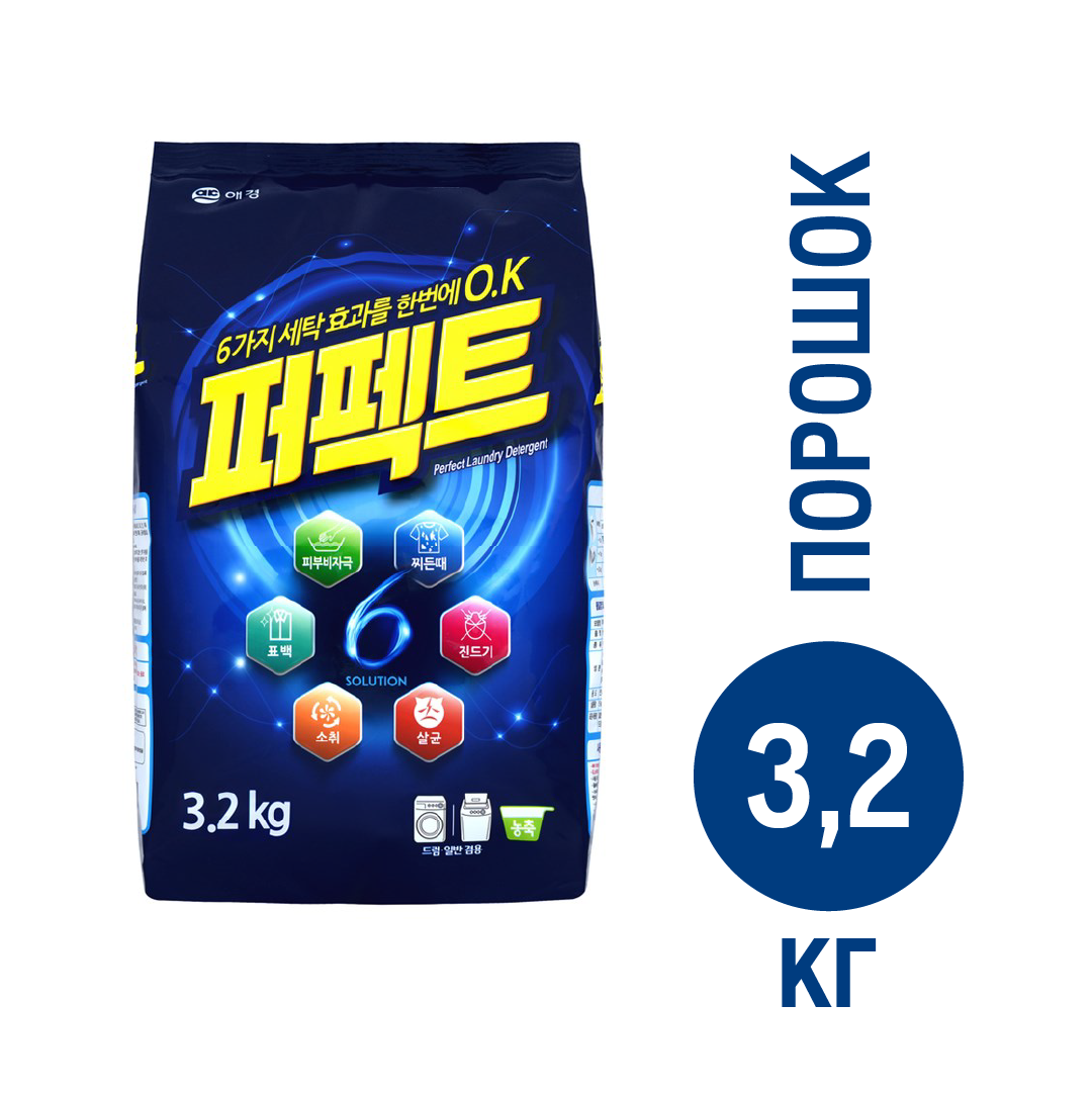 Aekyung Perfect 6 Solution Концентрированный стиральный порошок универсальный 3,2 кг в мягкой упаковке