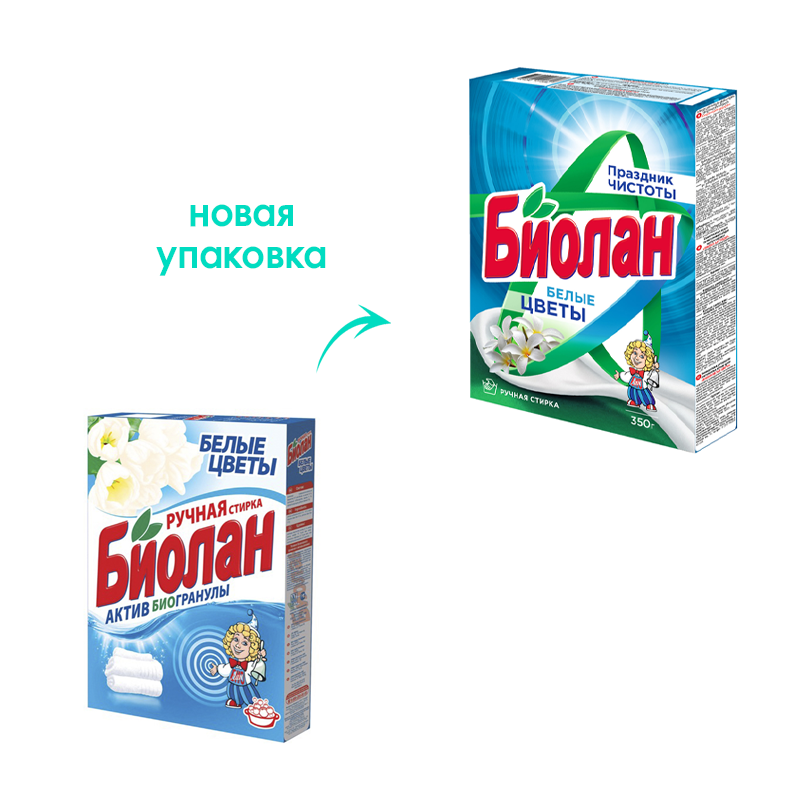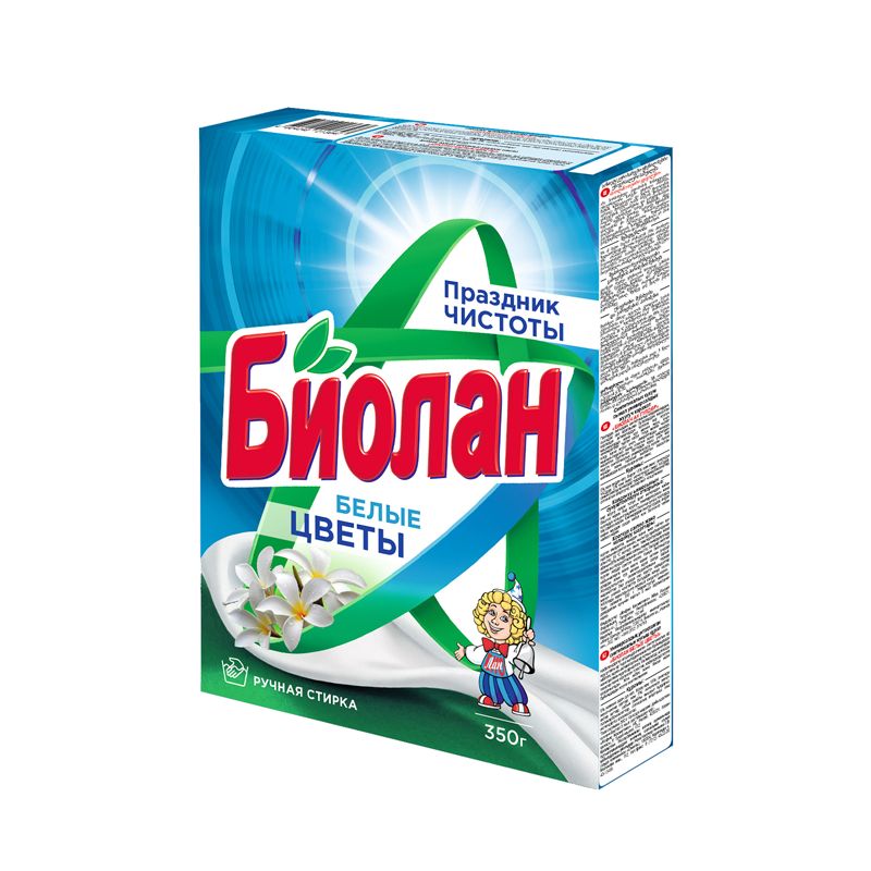 Порошок стиральный БИОЛАН Белые цветы ручная стирка в тверд. упаковке 350гр