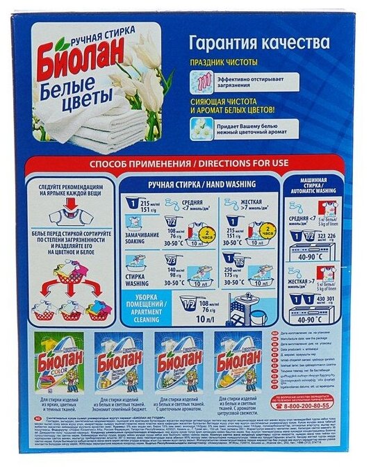 СохранитьСМС для ручной стирки БИОЛАН Белые Цветы 350г интересное: