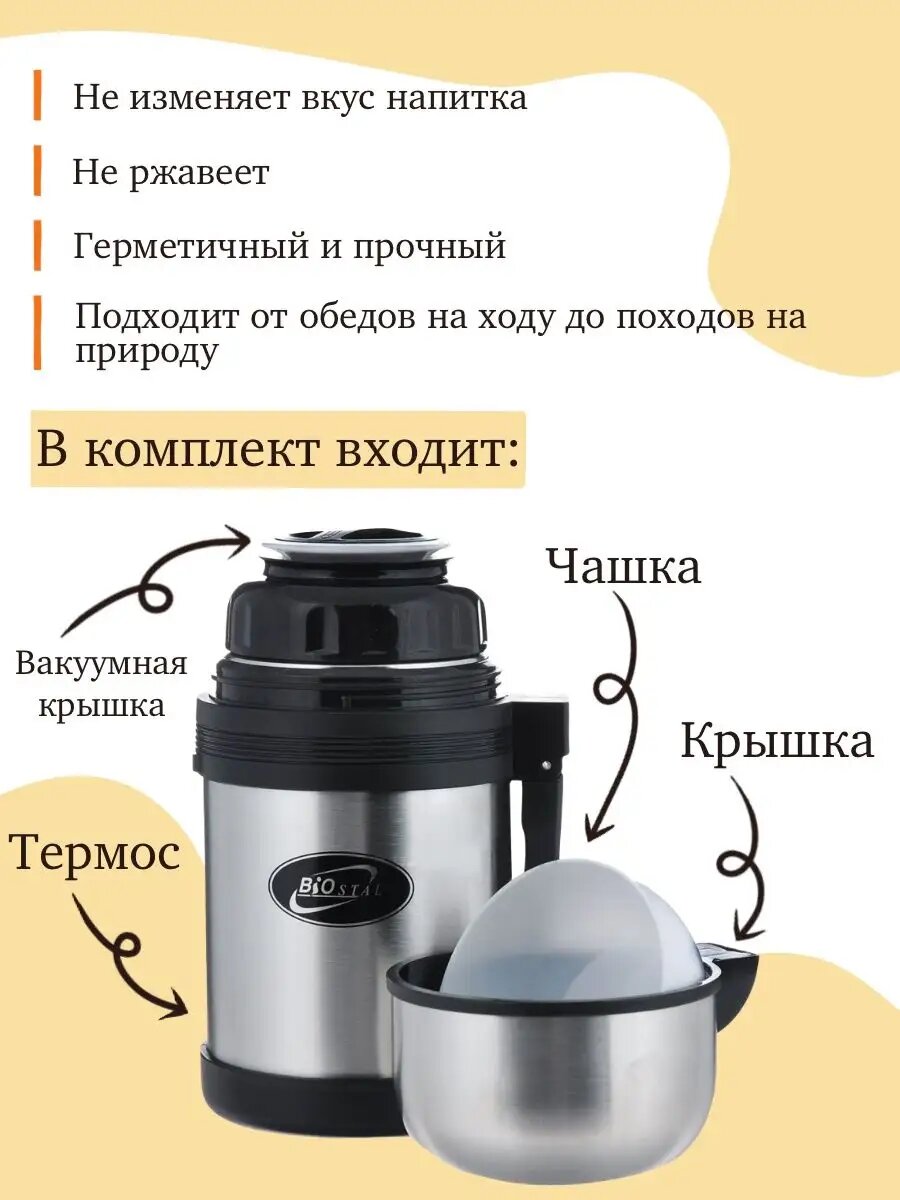 Термос универсальный Вакуумный, доп чашка и ручка для переноски, Биосталь/Biostal (2),NG-2000-1