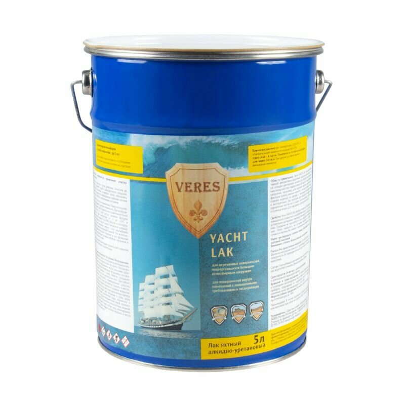 Лак яхтный Veres, алкидно-уретановый, глянцевый, 5 л, 1шт, жестяная банка