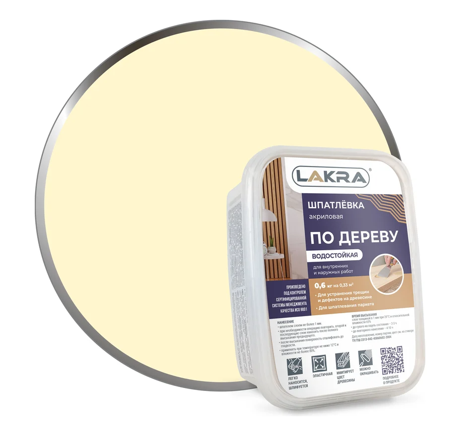 Шпатлевка по дереву Лакра акриловая, Белая, готовая к применению, 0,6 кг