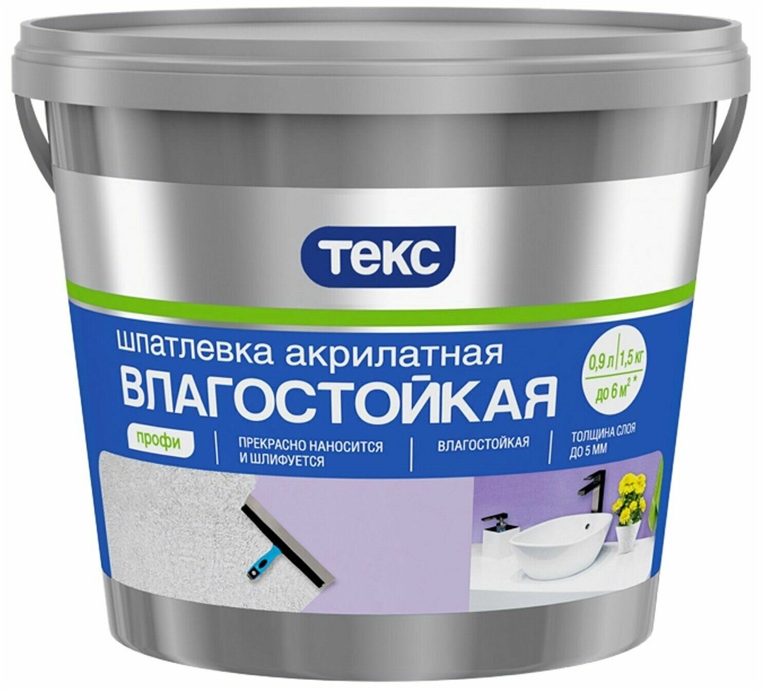 Шпатлевка влагостойкая Текс Профи, 0,9 л