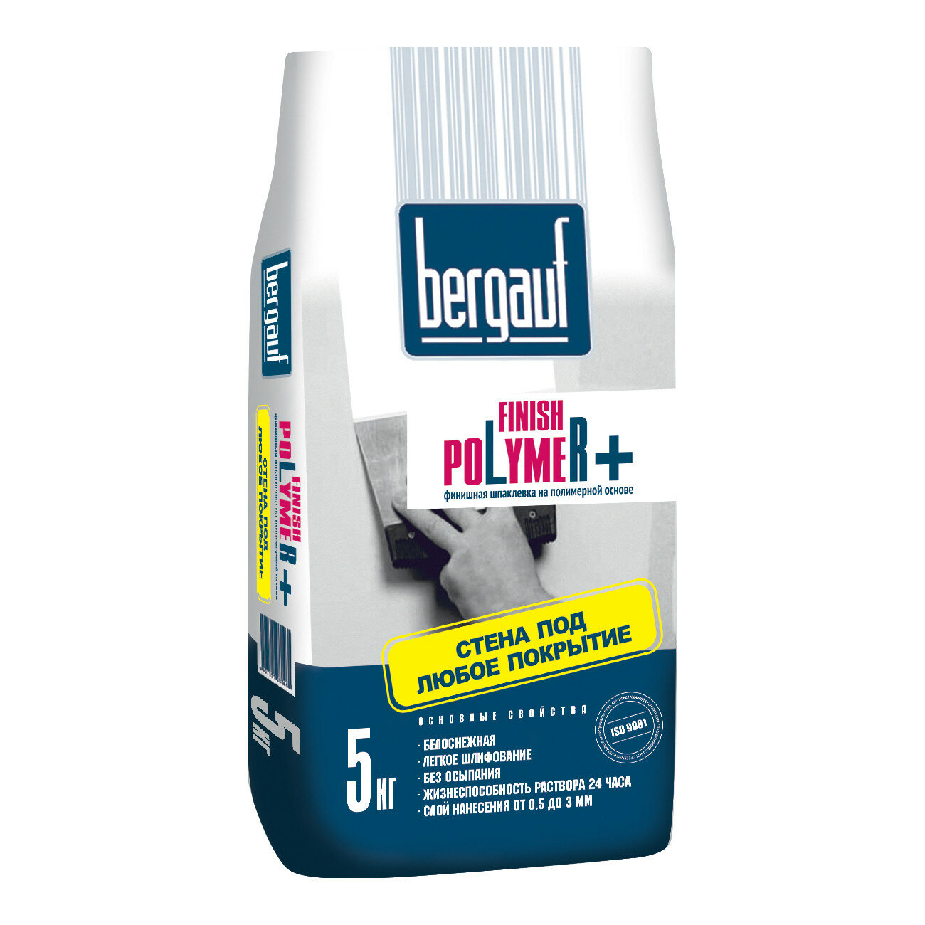 Шпатлевка Бергауф Finish Polymer, 5 кг для стен и потолка финишная полимерная шпаклевка
