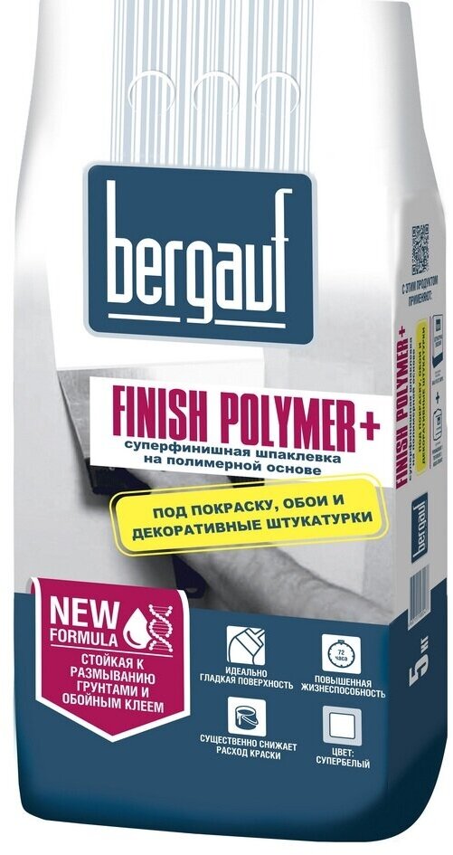 Суперфинишная шпаклевка под покраску, обои и декоративные штукатурки Bergauf Finish Polymer+ интересное: