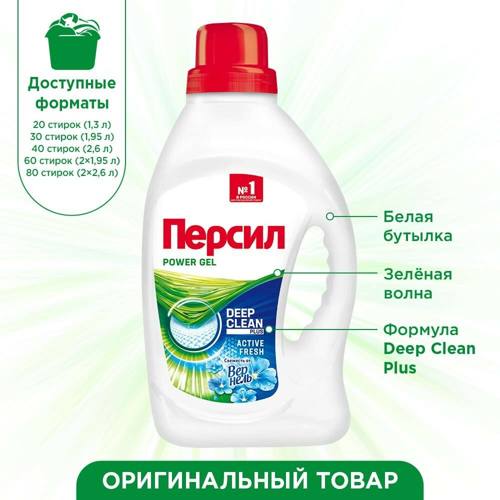 Гель для стирки Персил Свежесть от Вернель Deep Clean Technology, 1.95 л, бутылка