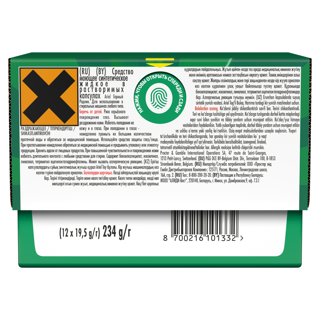 Ariel Pods Всё-в-1 Горный родник Капсулы для стирки, 390 г, природа и свежесть, свежесть, для стойких загрязнений, для детского белья, 20 шт.