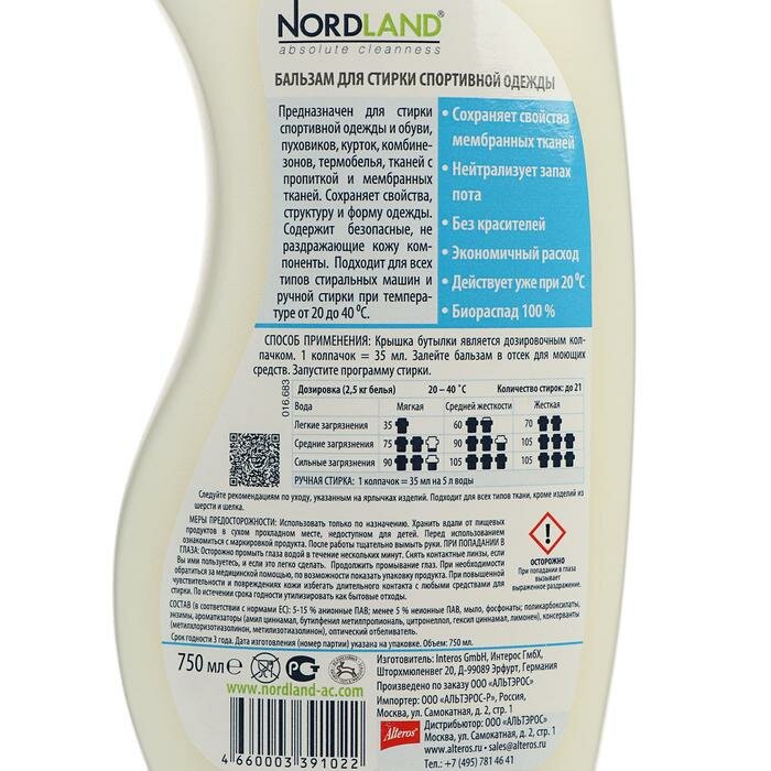 Купить бальзам для стирки NORDLAND Sport, для спортивной одежды, 750 мл