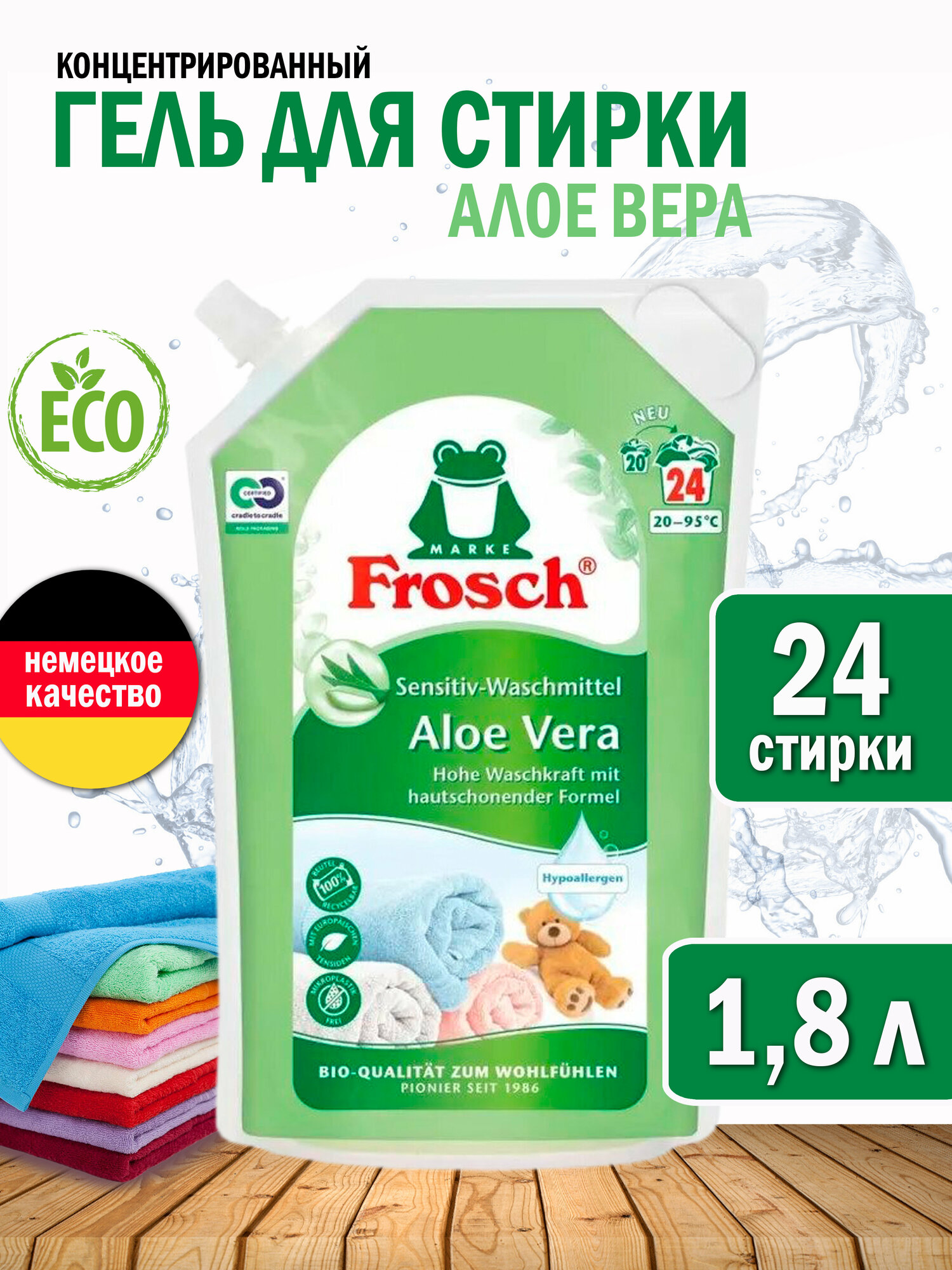 Ниже Вы можете прочитать отзывы на Frosch Жидкое средство для стирки Алоэ Вера 1,8 л, ознакомится с подробными характеристиками, посмотреть интересные обзоры и фотографии на Frosch Жидкое средство для стирки Алоэ Вера 1,8 л.