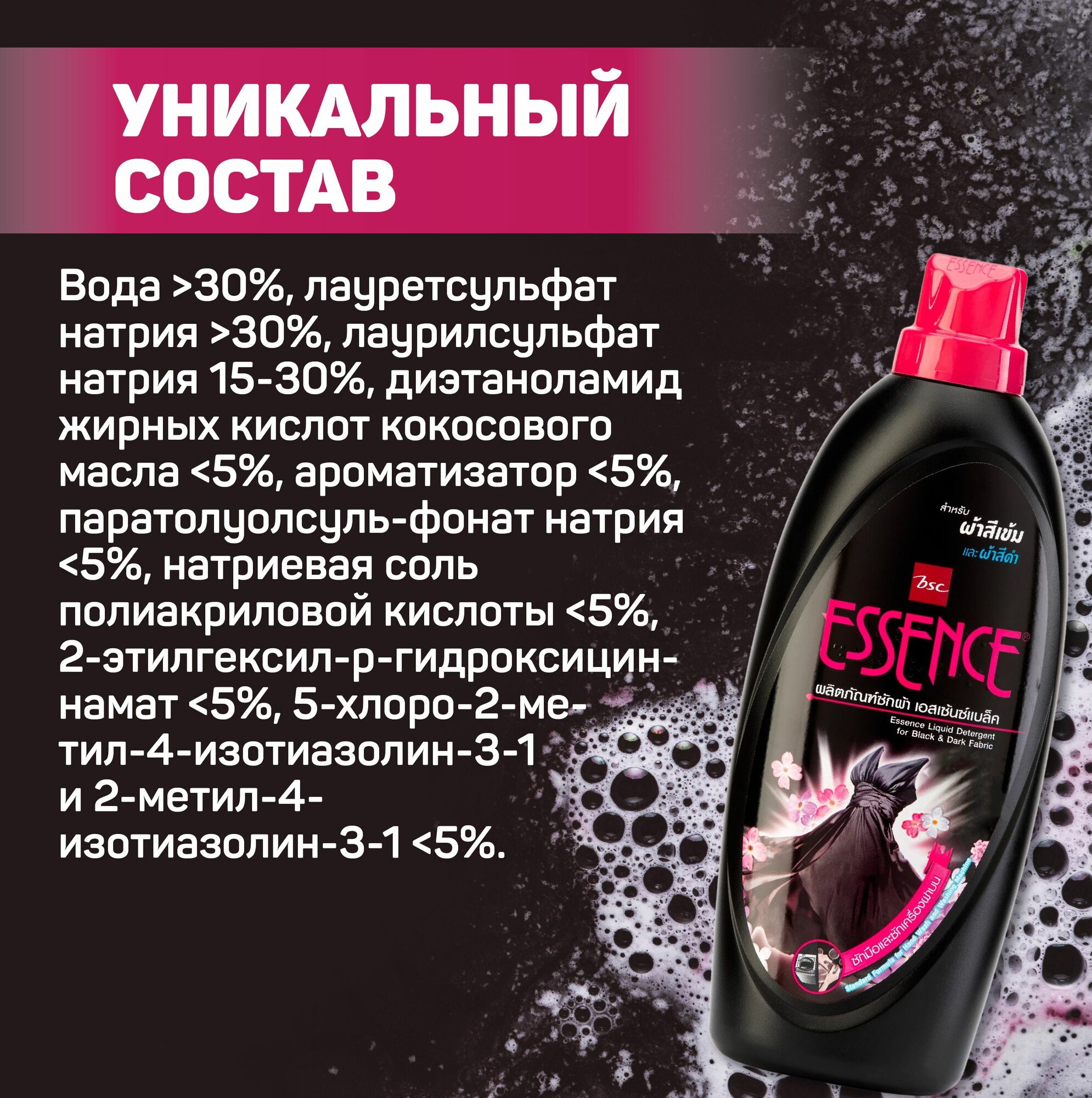 Гель Парфюм ESSENCE для стирки Черного и Цветного белья,900мл,(Концентрат)
