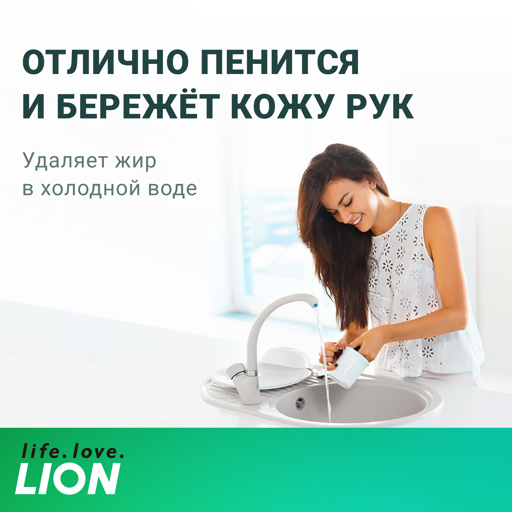 Lion Средство для мытья посуды, овощей и фруктов (зеленый чай) 500г