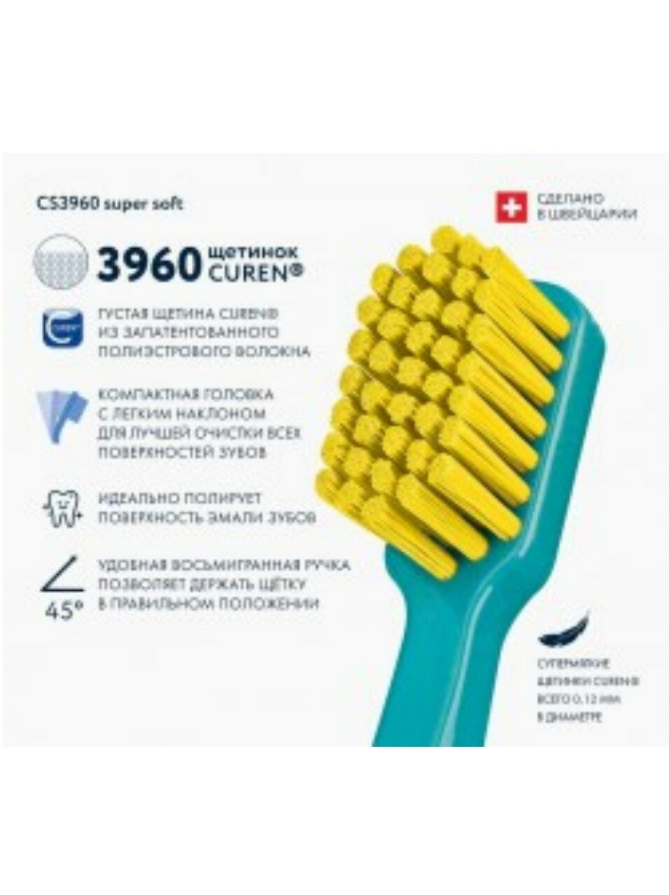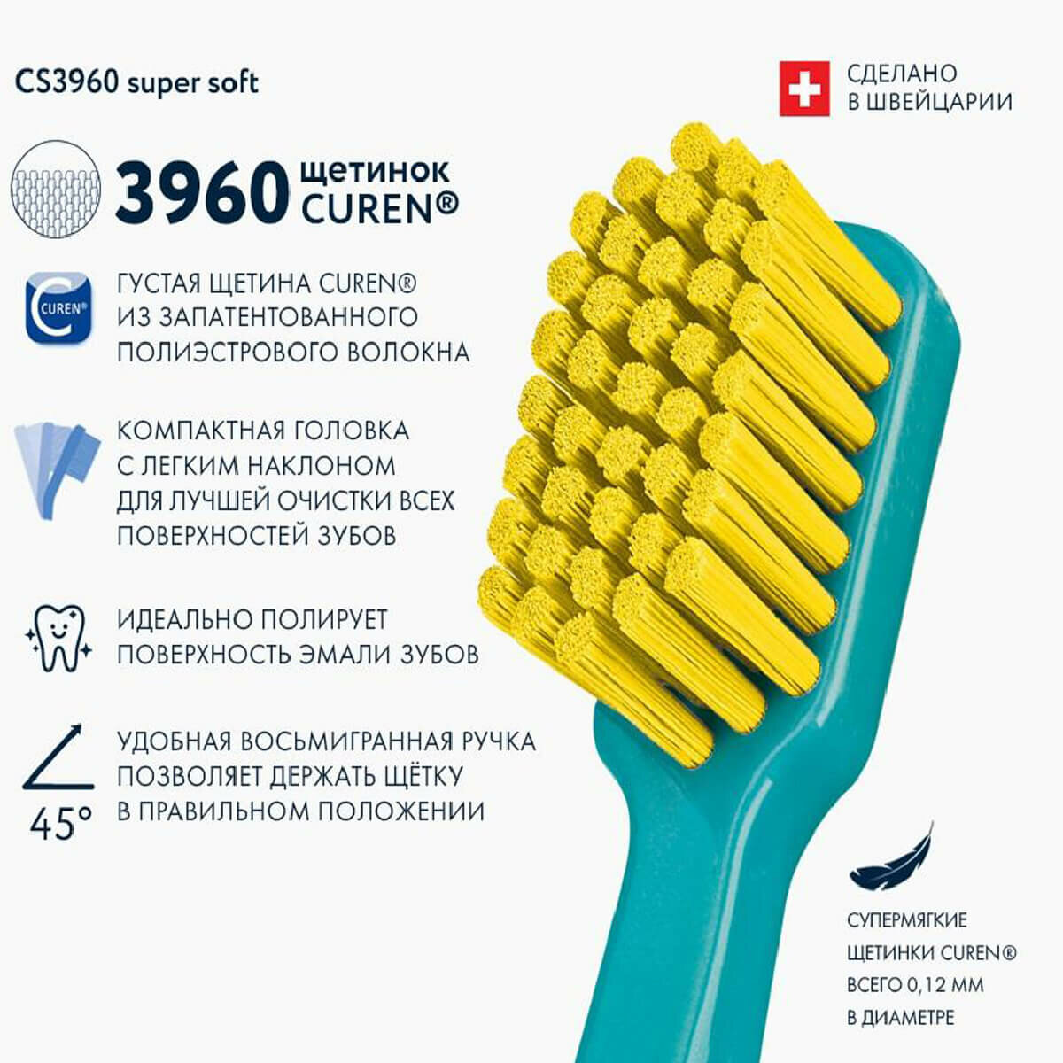 Зубная щетка Curaprox CS 3960 super soft, бирюзовый, диаметр щетинок 0.12 мм