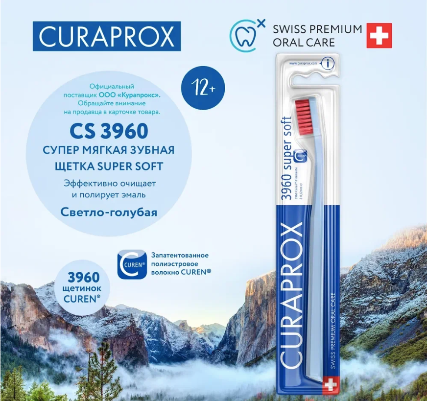 Зубная щетка Curaprox CS 3960 super soft, голубой, диаметр щетинок 0.12 мм