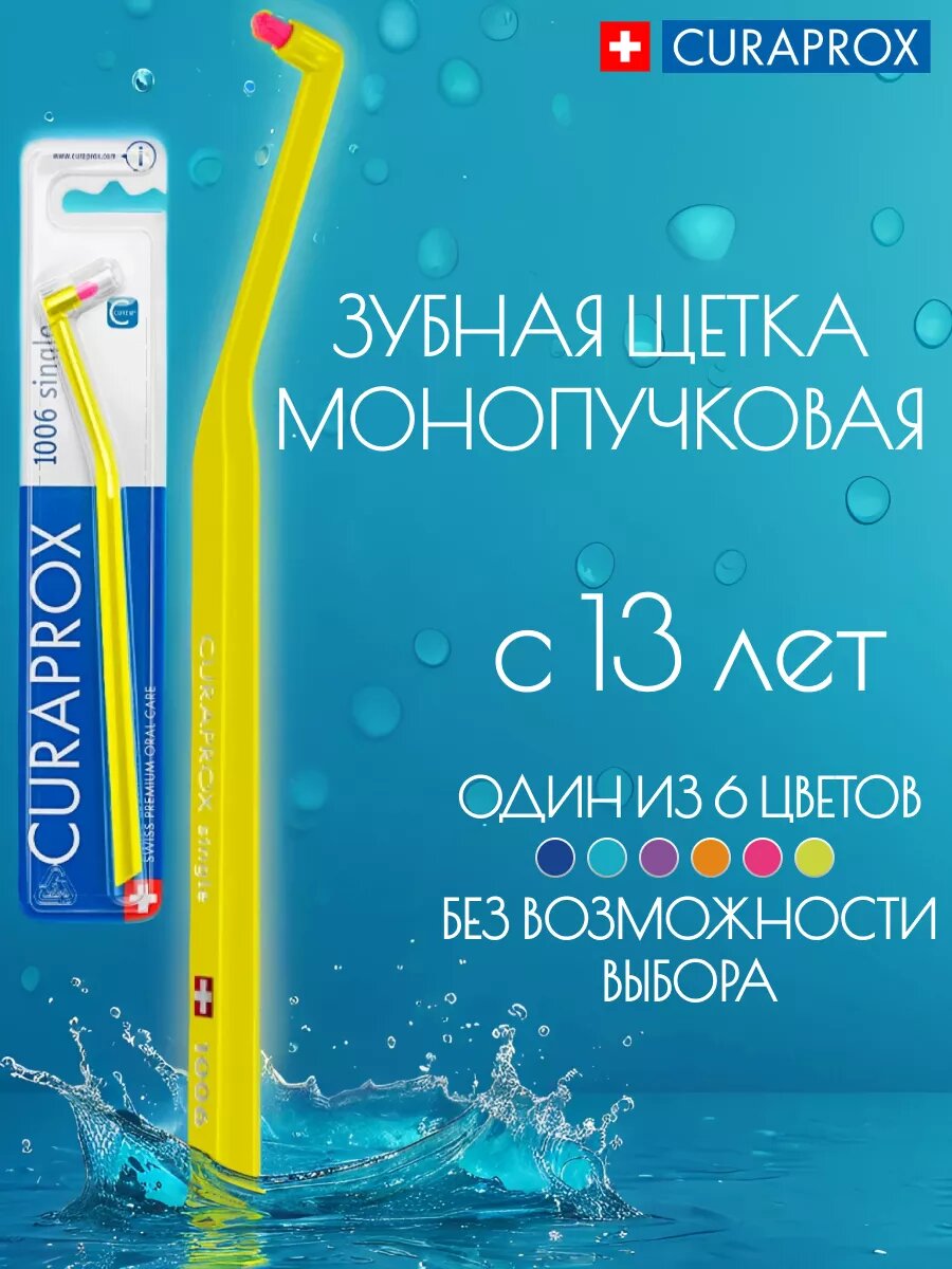 Зубная щетка Curaprox "Single & sulcular", 9мм, монопучковая,желтый,синий