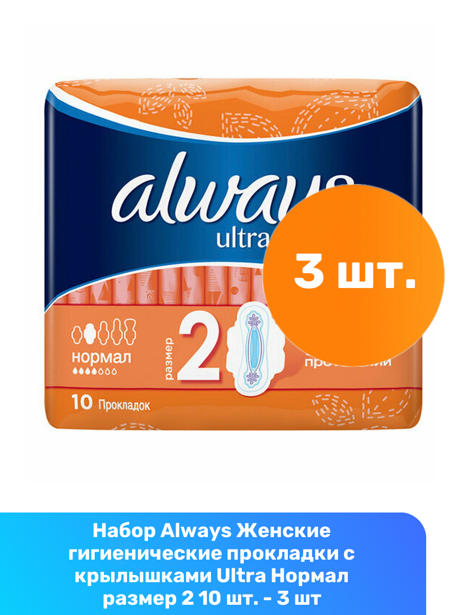 Купить Always Женские гигиенические прокладки с крылышками Ultra Нормал размер 2 10 шт. - 3 шт