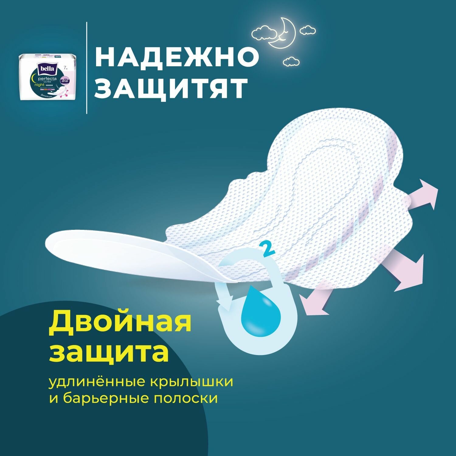 Прокладки женские гигиенические Bella / Белла Perfecta Ultra Night 6 капель дышащие ультратонкие с крылышками, пачка 7шт. / женская гигиена