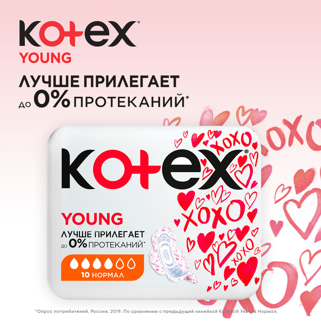 Прокладки гигиенические Kotex Young, 4 капли из 6, нормал, 10шт