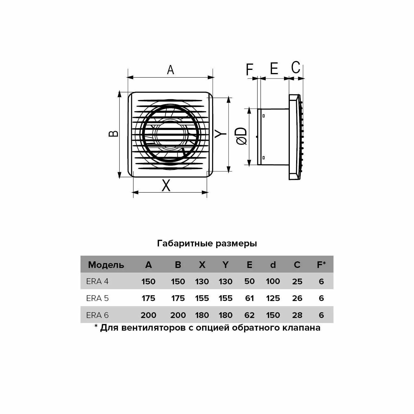 Вытяжной вентилятор 125 с обратным клапаном и выключателем ERA 5C-02