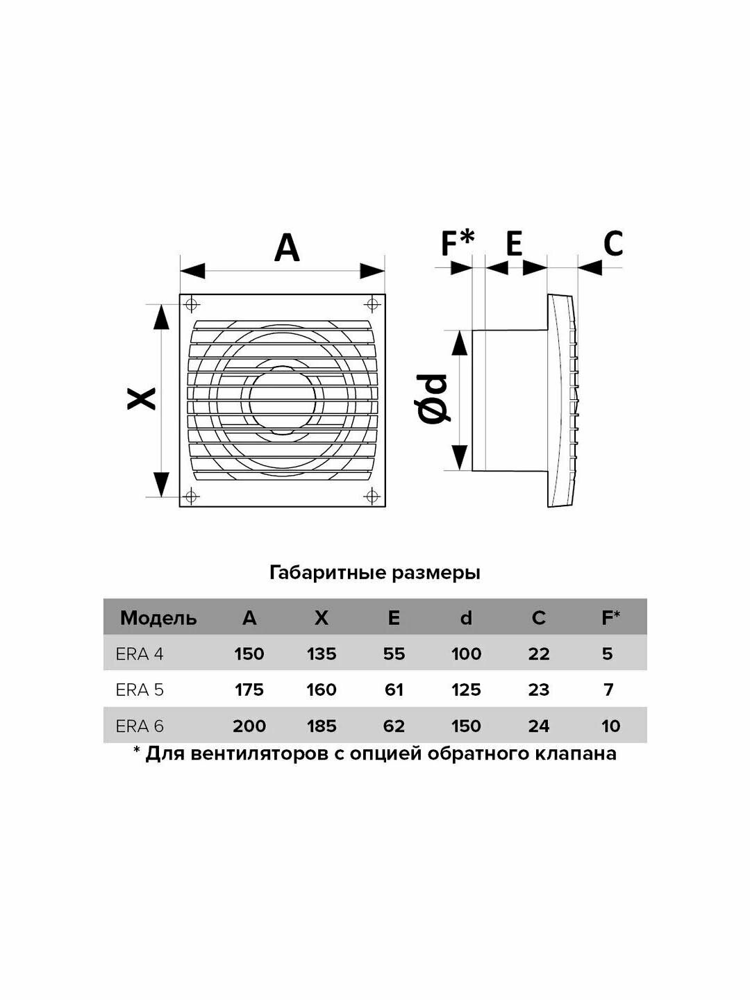 Вентилятор накладной ERA D125 с обратным клапаном ERA