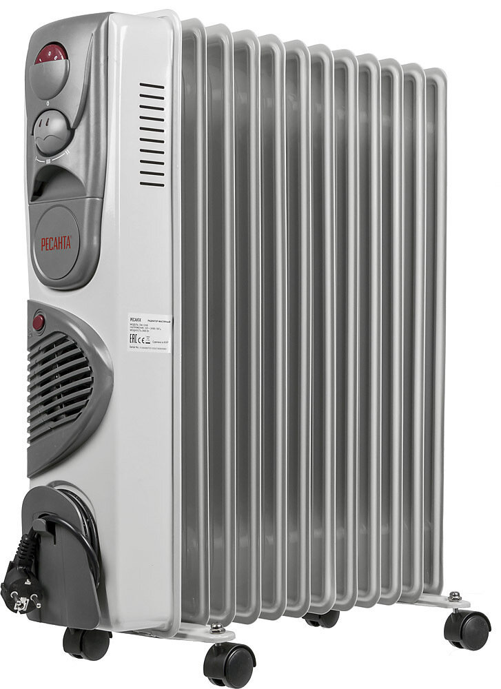 Купить Масляный радиатор РЕСАНТА ОМ-12НВ, 2.9 кВт, 11 секций, ТЭН, вентилятор