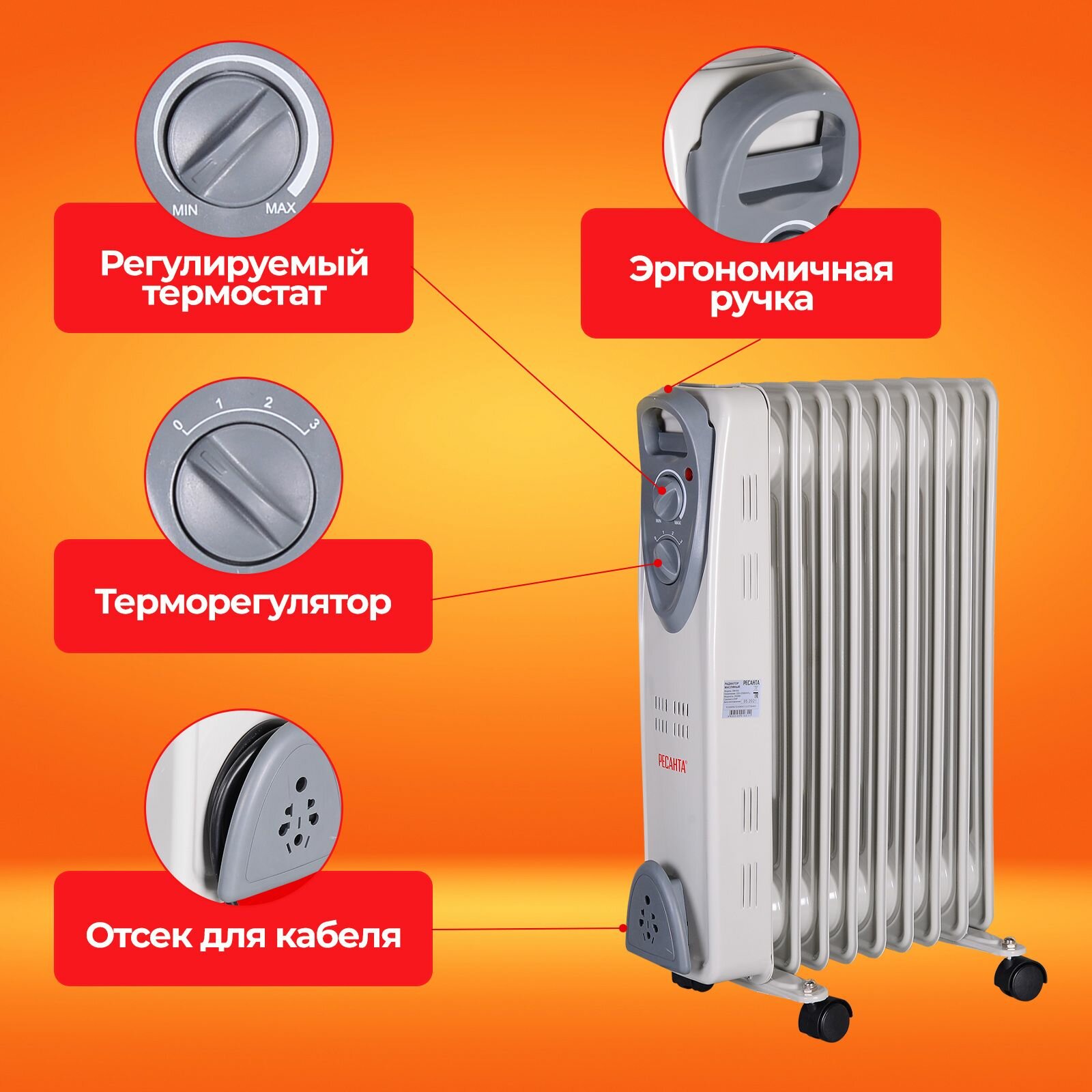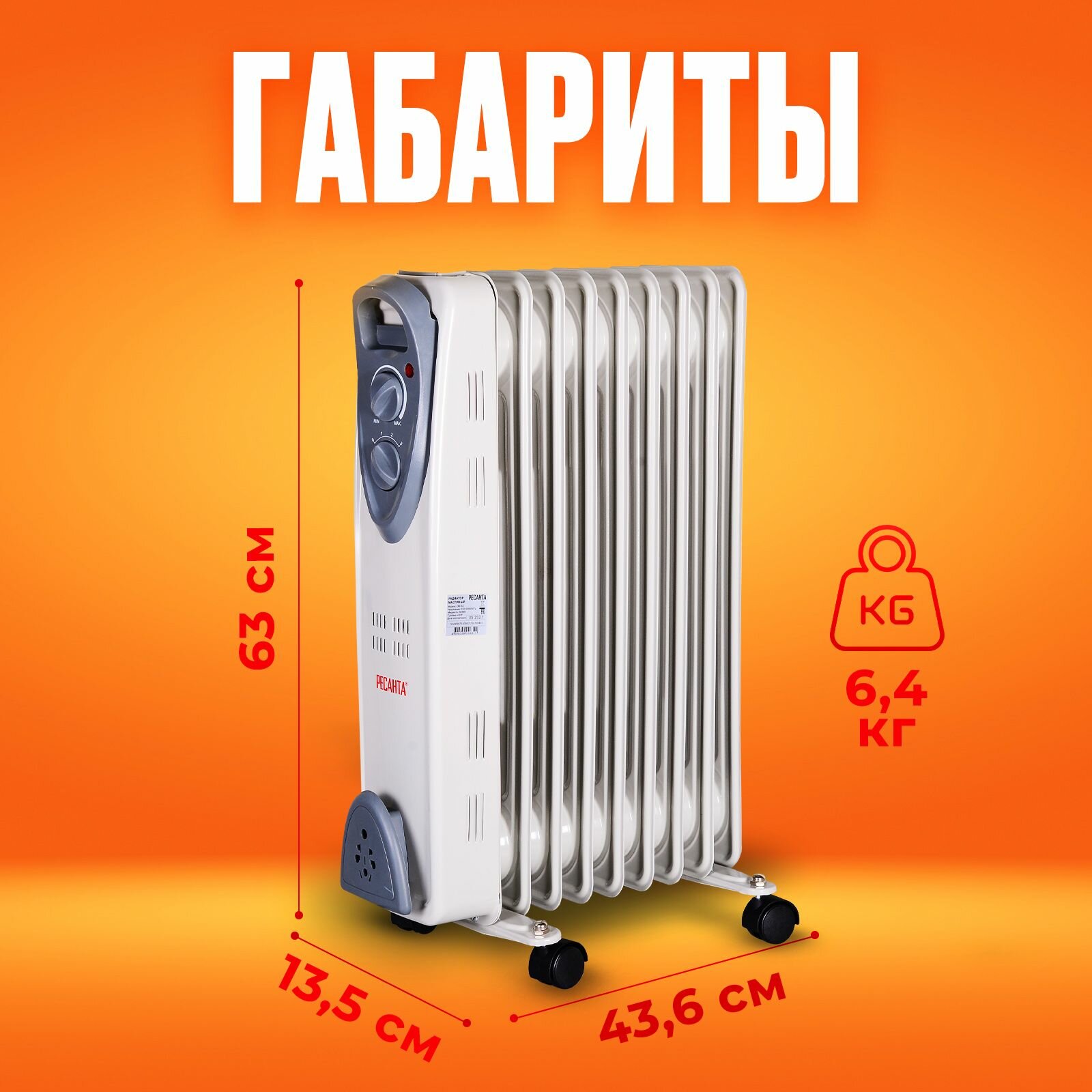 Масляный радиатор РЕСАНТА ОМ-12НВ, 2.9 кВт, 11 секций, ТЭН, вентилятор