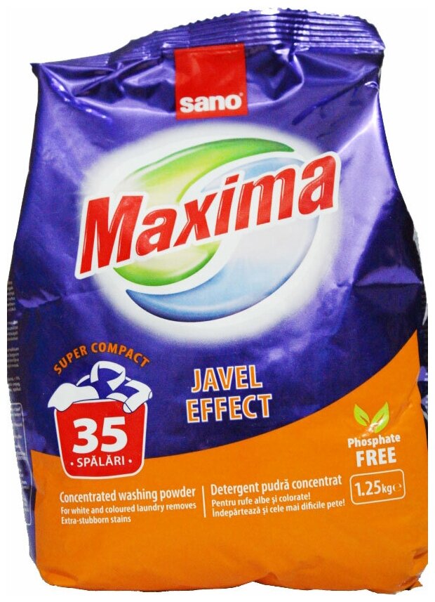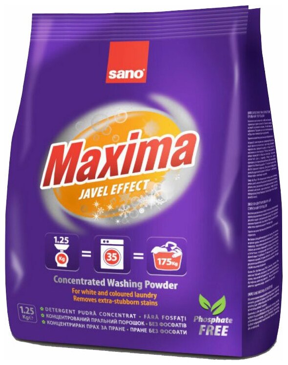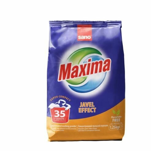 SANO Maxima Javel Effect Концентрированный универсальный стиральный порошок с эффективным пятновыводителем 1.25 кг на 35 стирок