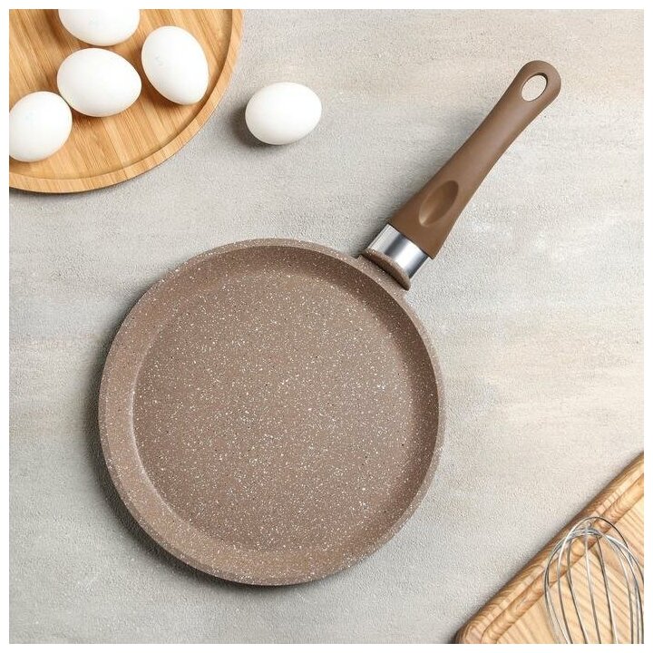 Сковорода блинная «Гранит Brown», d=20 см, пластиковая ручка, антипригарное покрытие, цвет коричневый