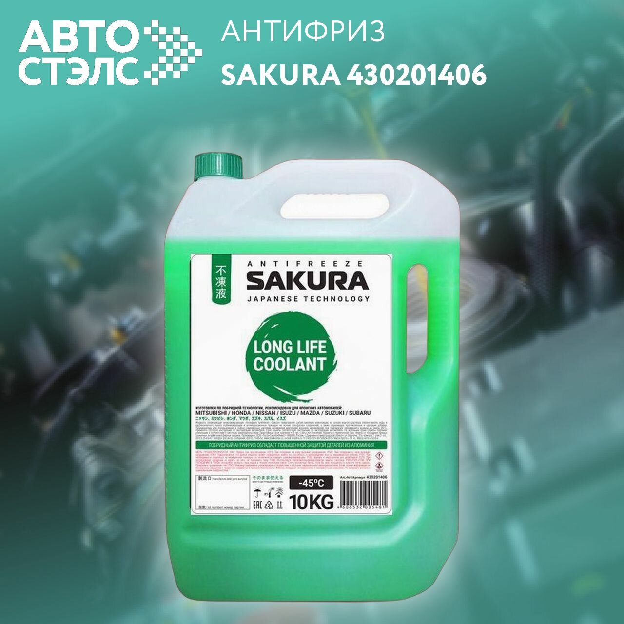 Антифриз Sakura Long Life Coolant, зеленый, -45°C, 10кг, арт. 430201406