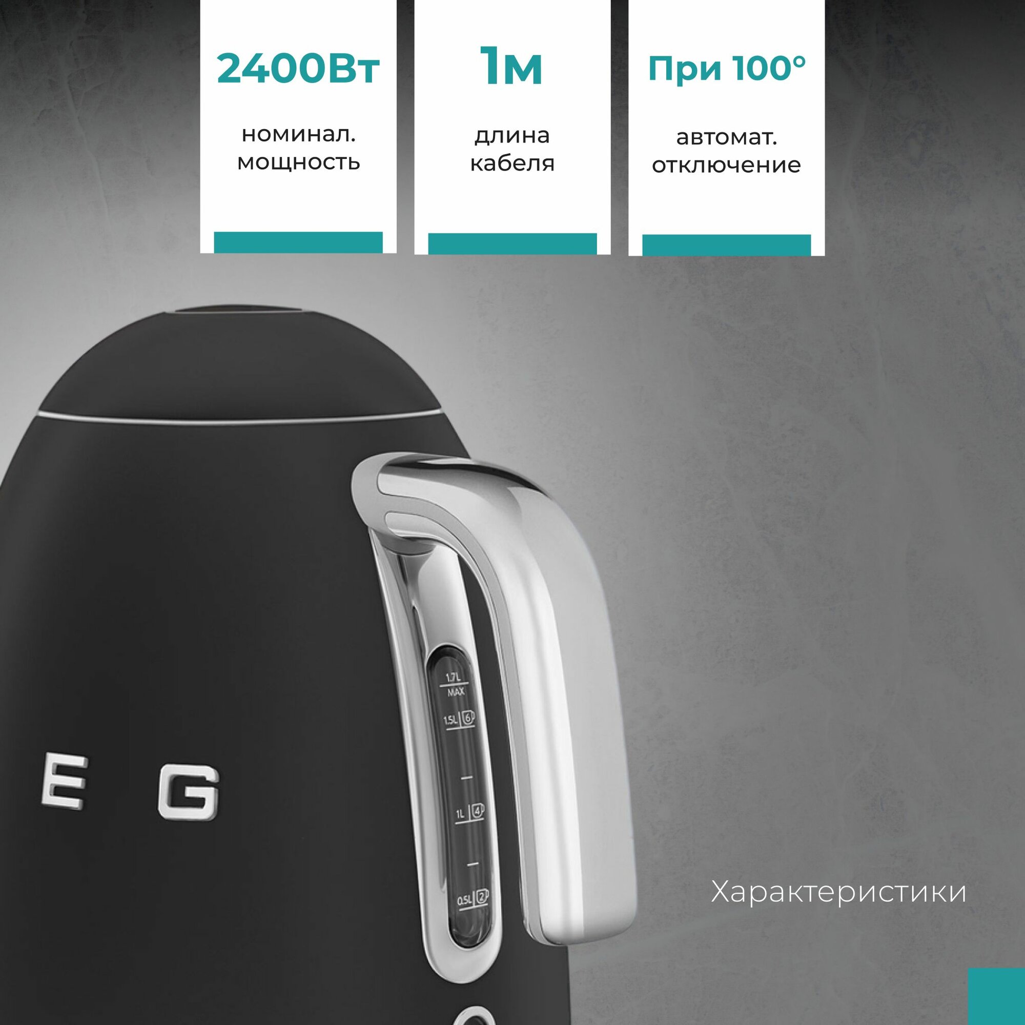 Чайник Smeg KLF03BLMEU 50's Style, матовый черный