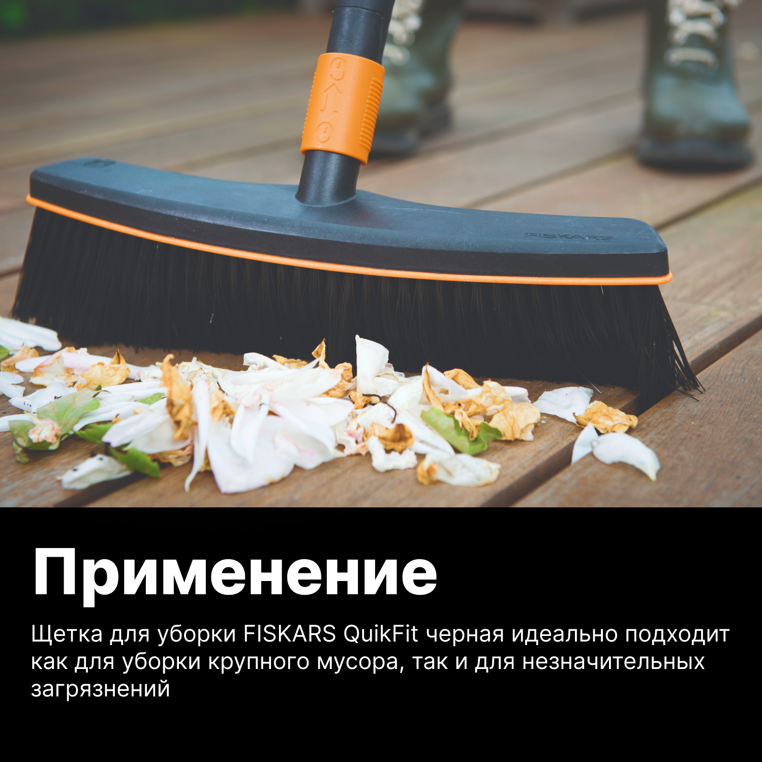 Метла Fiskars QuikFit пластик 38см черный/оранжевый (1001416) 1001416 .
