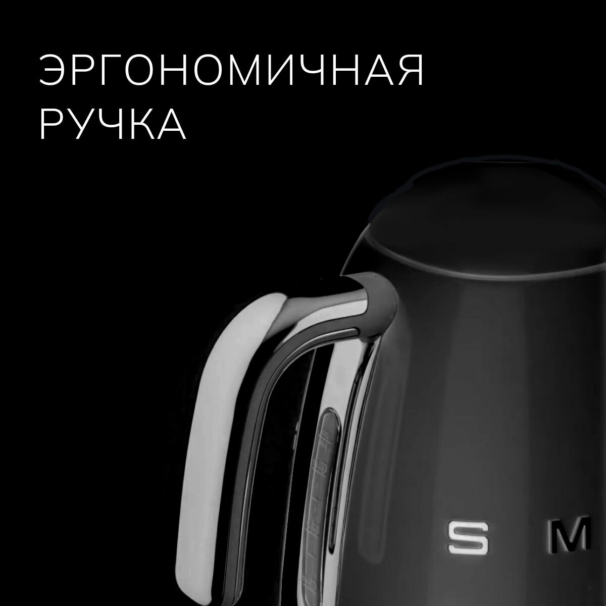 Электрический чайник Smeg Стиль 50-х г., чайник электрический, 1.7 л, 2400 Вт, корпус из нержавеющей стали, черный KLF04BLEU