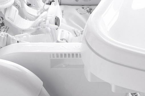 Стульчик порадовал качеством изготовления деталей. Приятно прикасаться и нет острых уголков. Угол наклона спинки, высота сидения и расположение столики регулируется. Столик имеет две столешницы. Если одна запачкалась и нет времени помыть, то просто ее снимаешь и используешь вторую. Чехол и ремни снимаются и стираются. Есть фиксаторы на колесах.