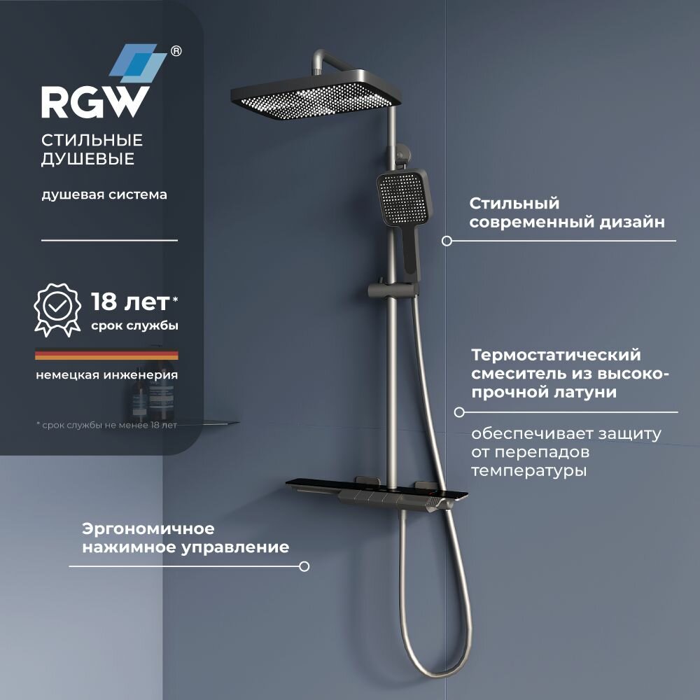 Ниже Вы можете прочитать отзывы на Душевая система RGW Shower Panels SP-34Gr 51140134-11 с термостатом Серая, ознакомится с подробными характеристиками, посмотреть интересные обзоры и фотографии на Душевая система RGW Shower Panels SP-34Gr 51140134-11 с термостатом Серая.