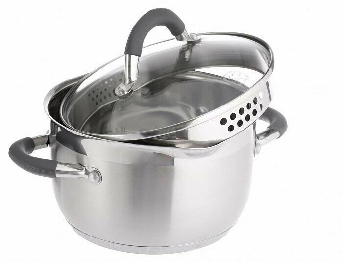 | Плюсы: | Силиконовые ручки и друшлаг! |