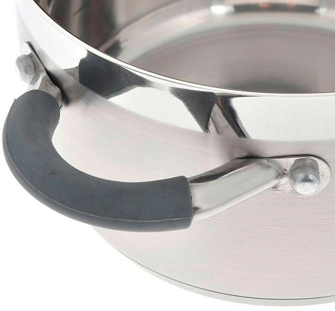 Силиконовые ручки, чтобы не обжигать пальцы, на крышке два вида отверстий для слива воды. Единственное, лучше очень часто не мыть в посудомоечной машине, болтики ручек окисляются и через года три ручка с крышки отвалилась. Но все равно купила ещё, просто стала чаще мыть их руками. |