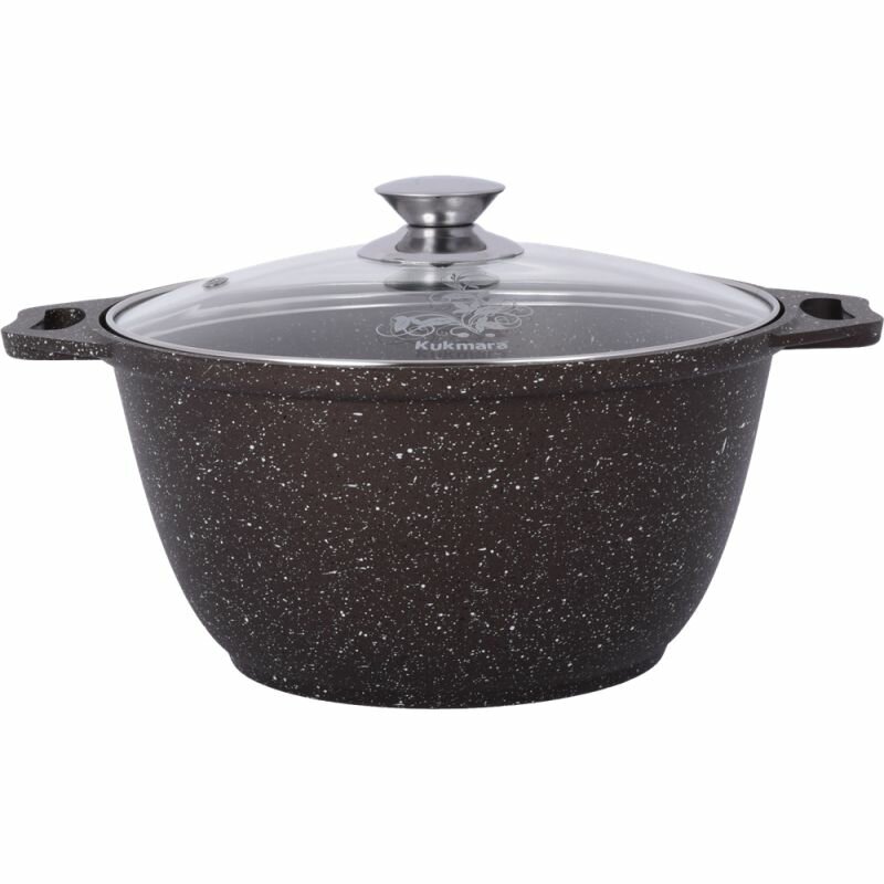 Кастрюля Kukmara 2 л, покрытие Мрамор кофейный, литой алюминий, со стеклянной крышкой 20см, кмк22а