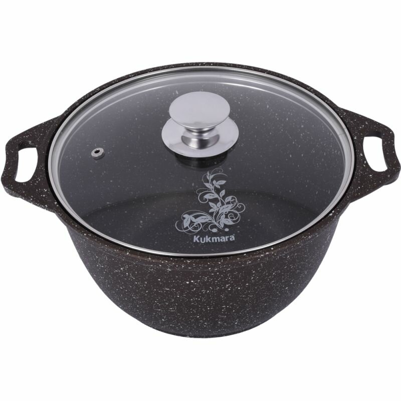 Кастрюля Kukmara 2 л, покрытие Мрамор темный, литой алюминий, со стеклянной крышкой 20см, кмт22а