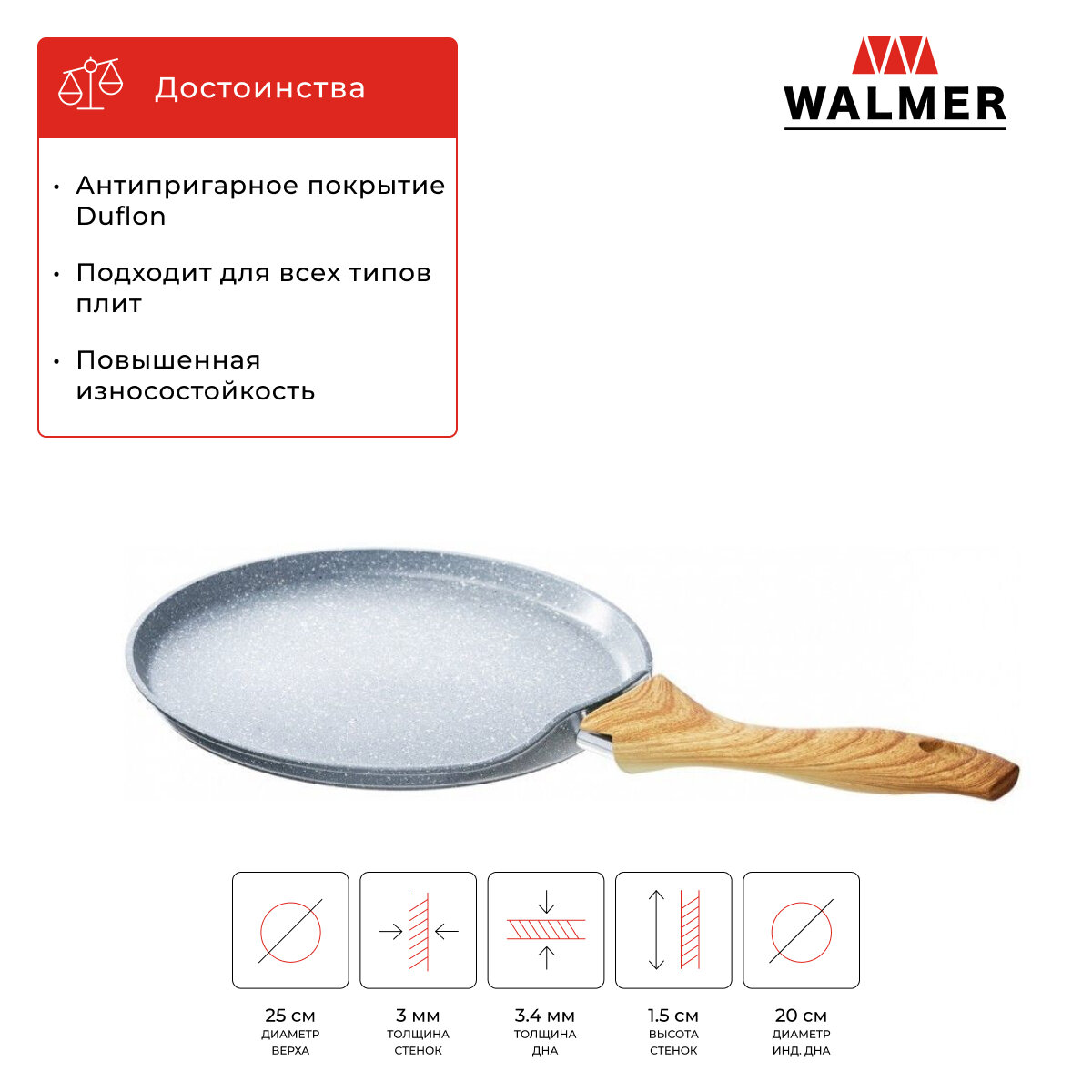 Сковорода блинная WALMER Stonehenge, диаметр 25 см, 45х25 см