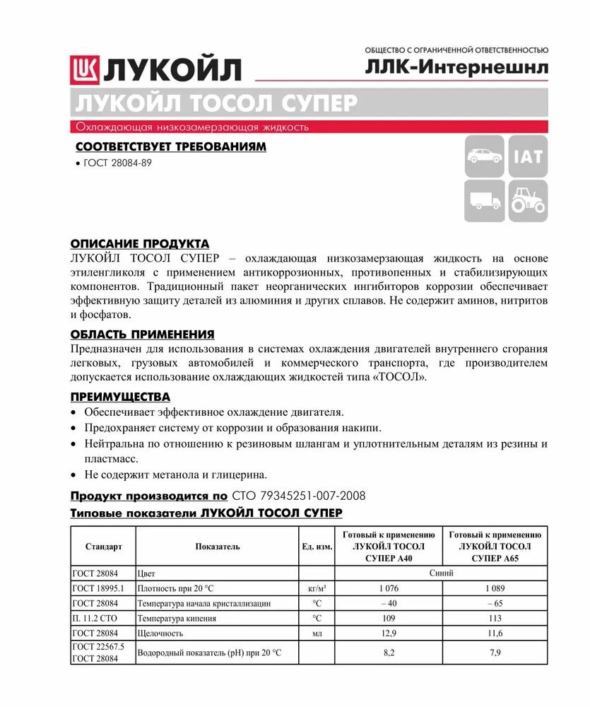 СохранитьLUKOIL 134322 тосол супер А40, 1кг интересное: