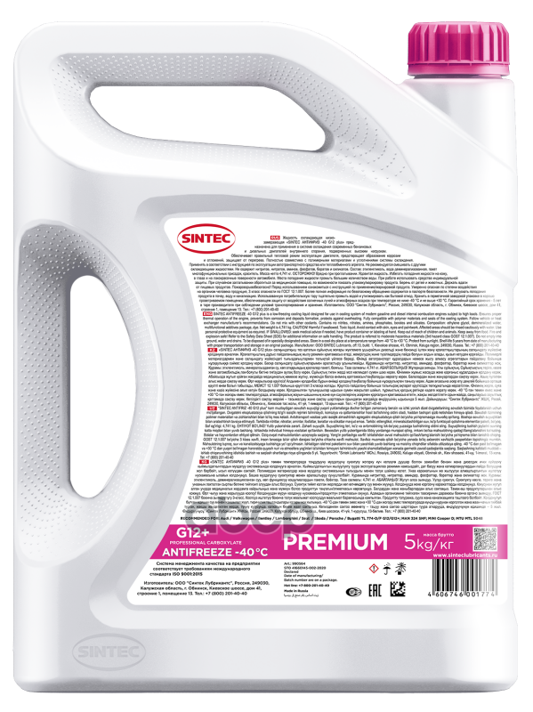 Антифриз Sintec Premium розовый G12+ 220 кг SINTEC 801921 | цена за 1 шт