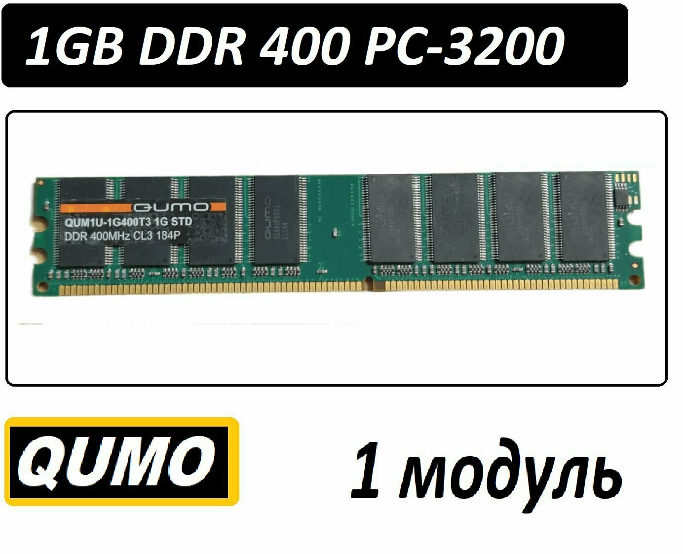 Модуль памяти Qumo DDR DIMM 400MHz PC-3200 CL3 - 1Gb QUM1U-1G400T3 интересное: