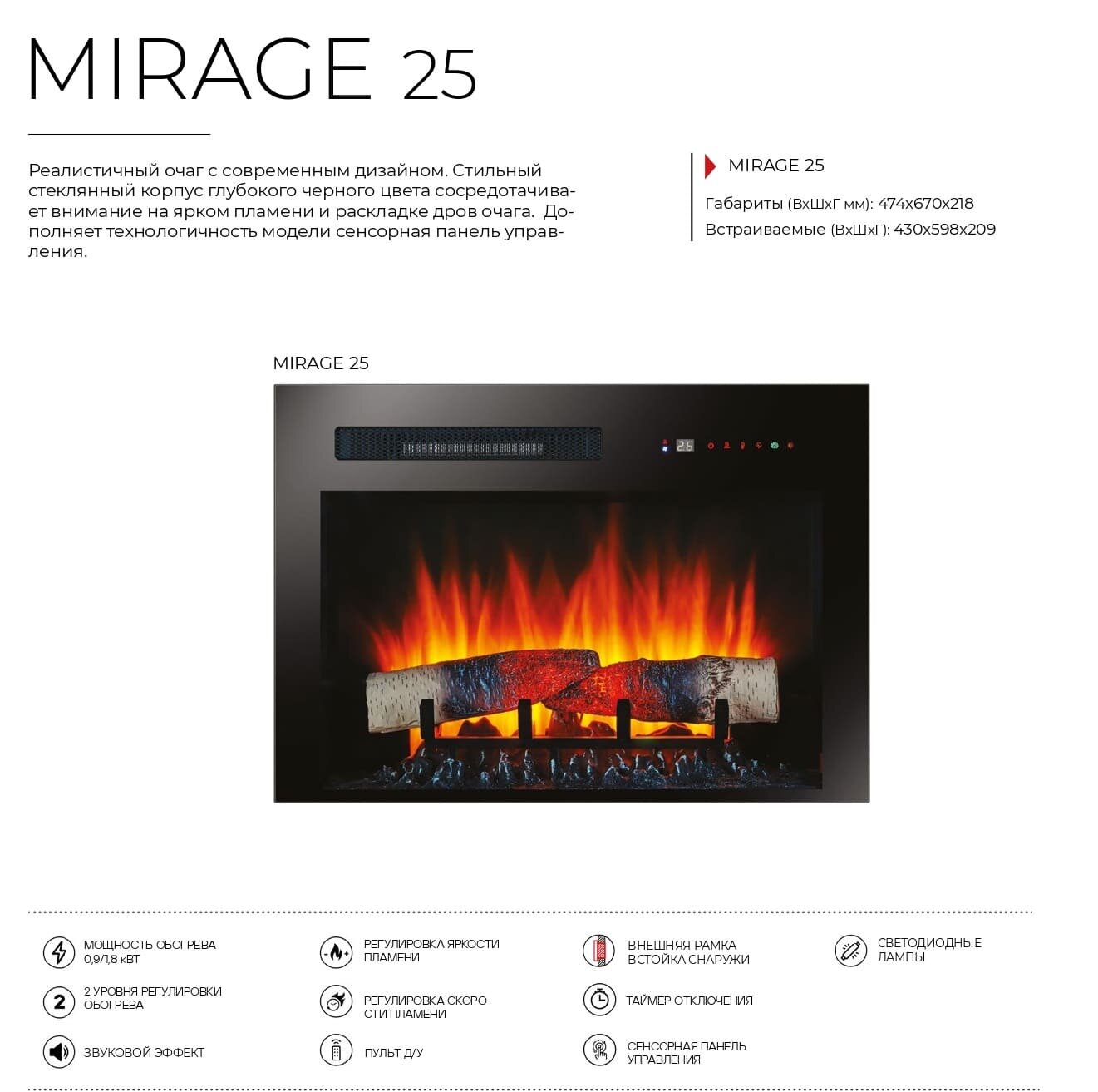 Электрокамин RealFlame Mirage 25, обогрев, сенсорная панель