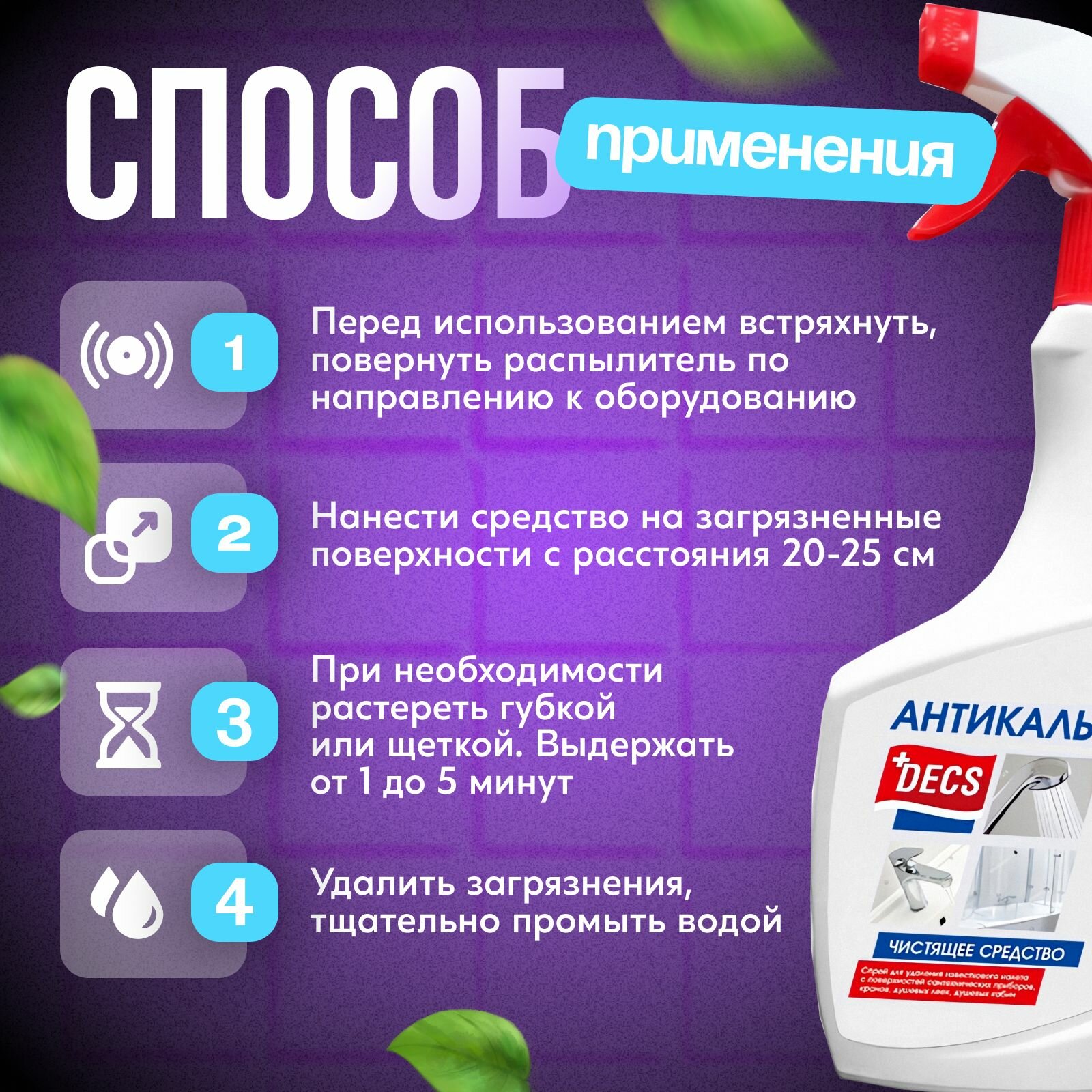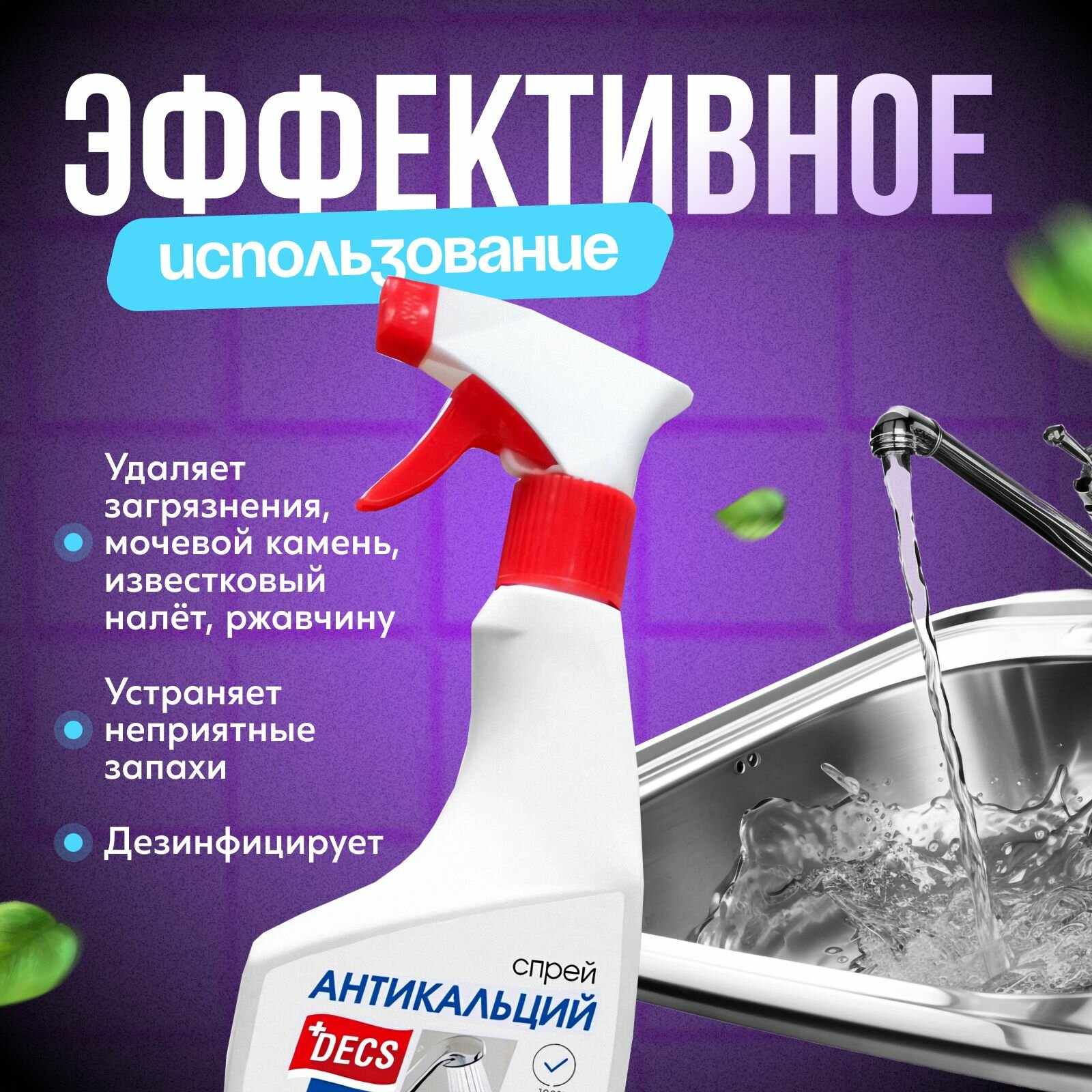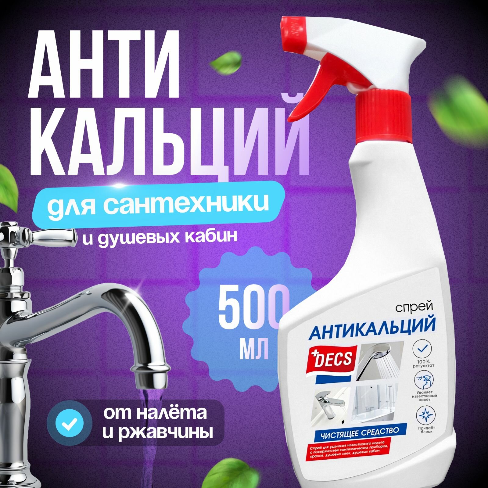 Антикальций спрей Decs, 500 мл, чистящее средство от известкового налёта для душевых кабин кранов и унитазов интересное: