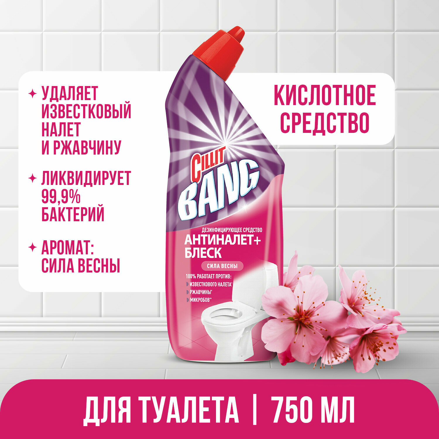 Купить Чистящее средство для унитаза CILLIT BANG Антиналет+Блеск Сила весны,гель для туалета, 750 мл