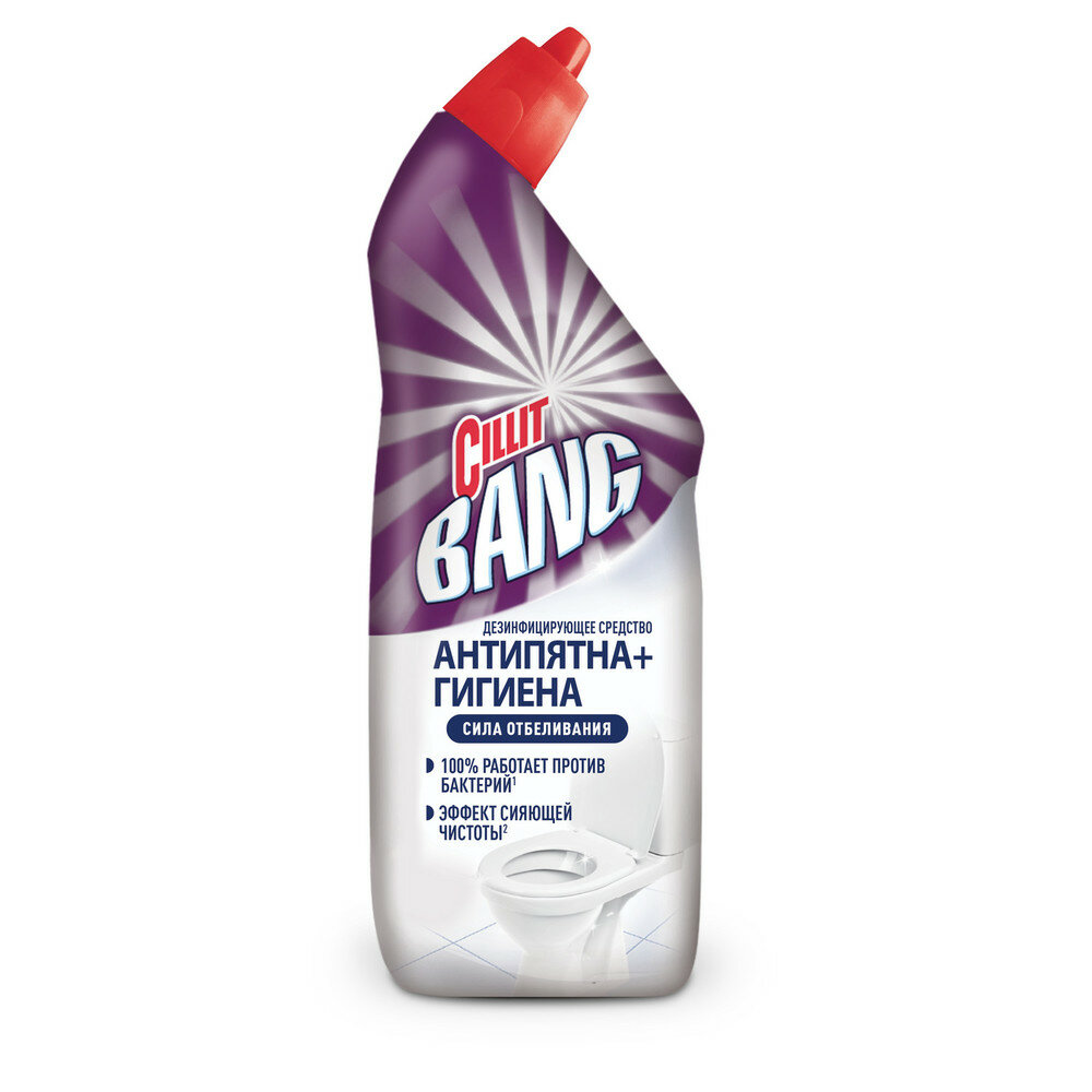 CILLIT BANG Дезинфицирующее средство для туалета Антипятна+Гигиена Сила отбеливания 750 мл.