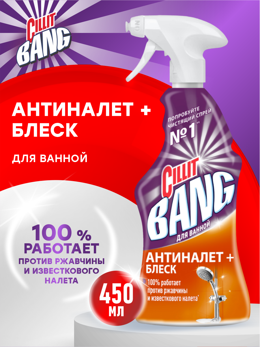 Чистящее средство для ванной CILLIT BANG Антиналет+Блеск, спрей от налета и ржавчины, 450 мл