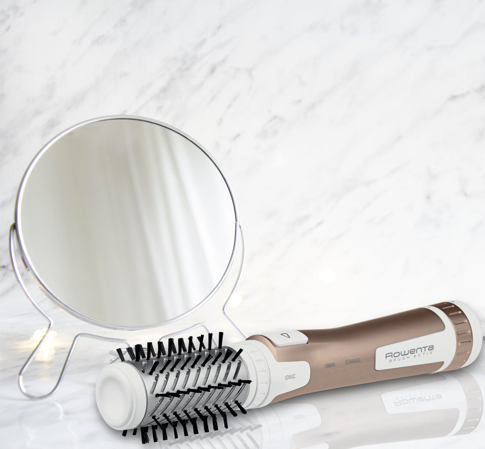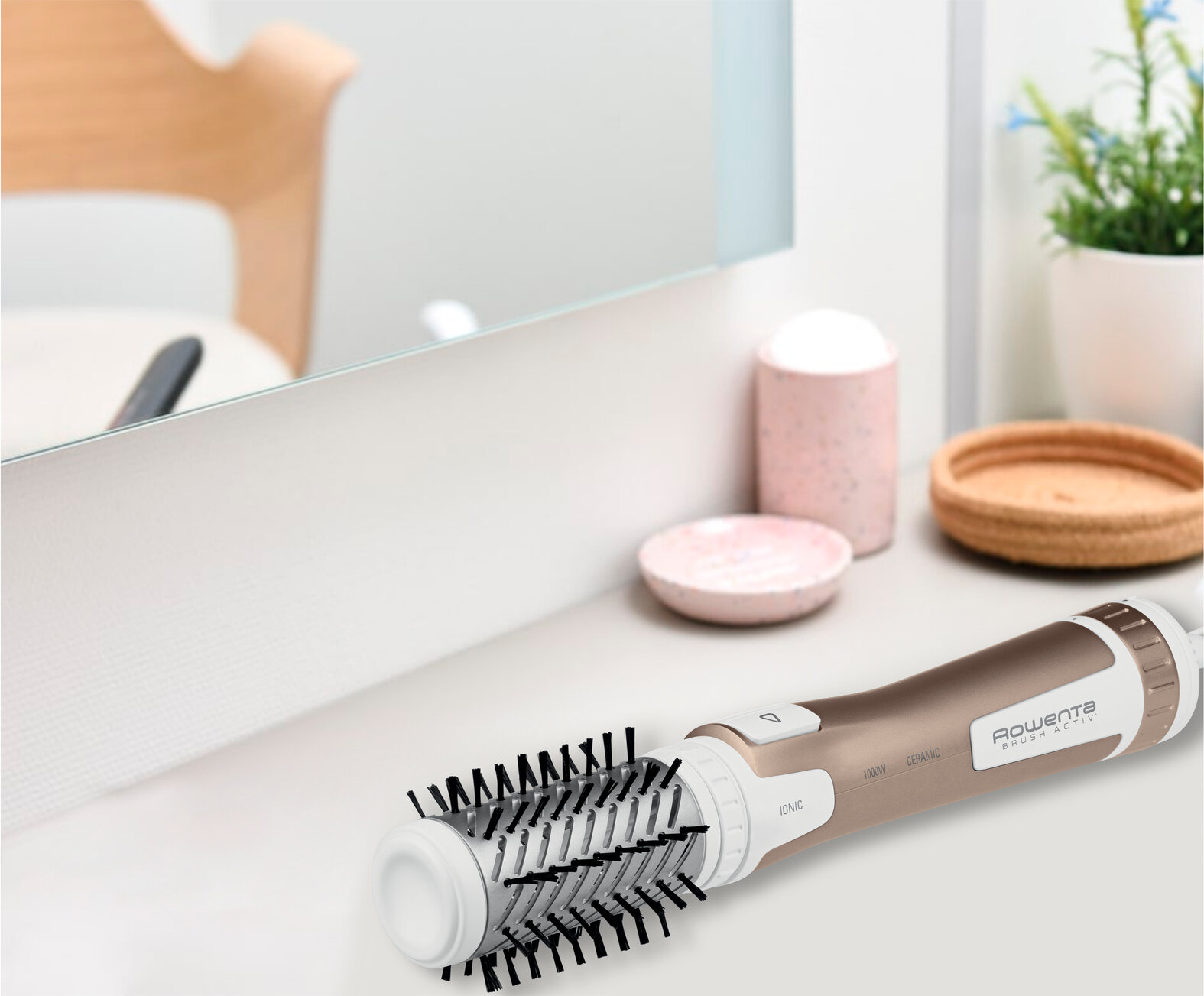 Купить Вращающаяся фен-щетка для волос Rowenta Brush Activ Compact CF9520F0 с ионизацией и 2 насадками, 1000 Вт, белая/золотая